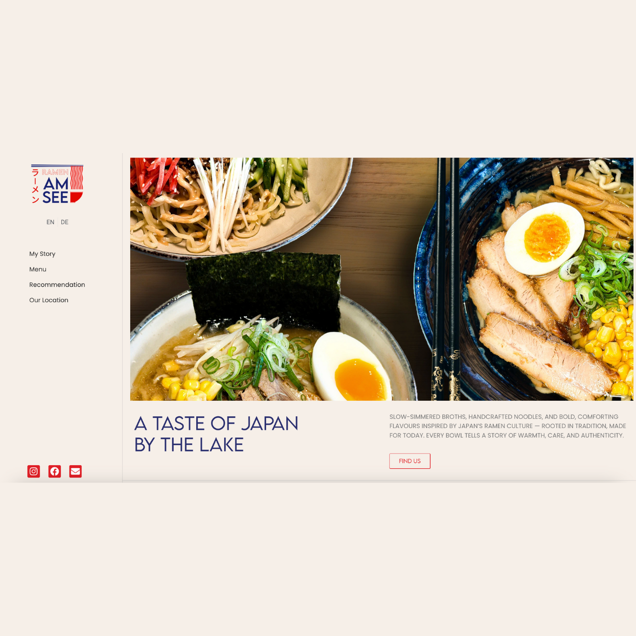Ramen Am See is a modern ramen brand based in Oberägeri, Switzerland, combining the craftsmanship of authentic Japanese ramen with the relaxed charm of Swiss lakeside culture. We developed its brand identity and creative direction to reflect this harmony: youthful, refined, and full of character.
